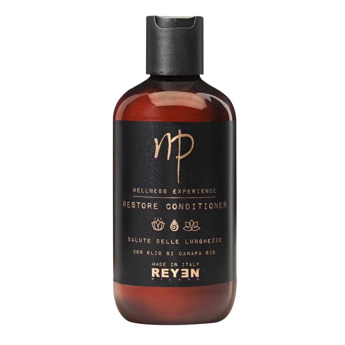 2. Condicionador Restaurador Tratamento regenerador com Óleo de Cânhamo BIO, que reestrutura a cutícula desde o interior até a superfície, selando pontas duplas e proporcionando suavidade e plenitude sem pesar.